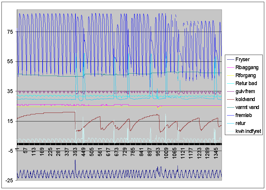 Dette er ved at blive udvidet med opsamling af temperaturer. Nedenstående er målingerne for et døgn (29/12 03)