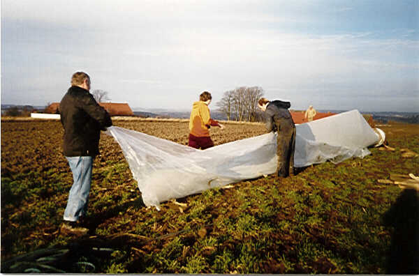 Vingerne pakkes ud af anpartshavere og en enkelt fra NORDTANK. Vingen er ca. 1,5 m bred på det bredeste sted.